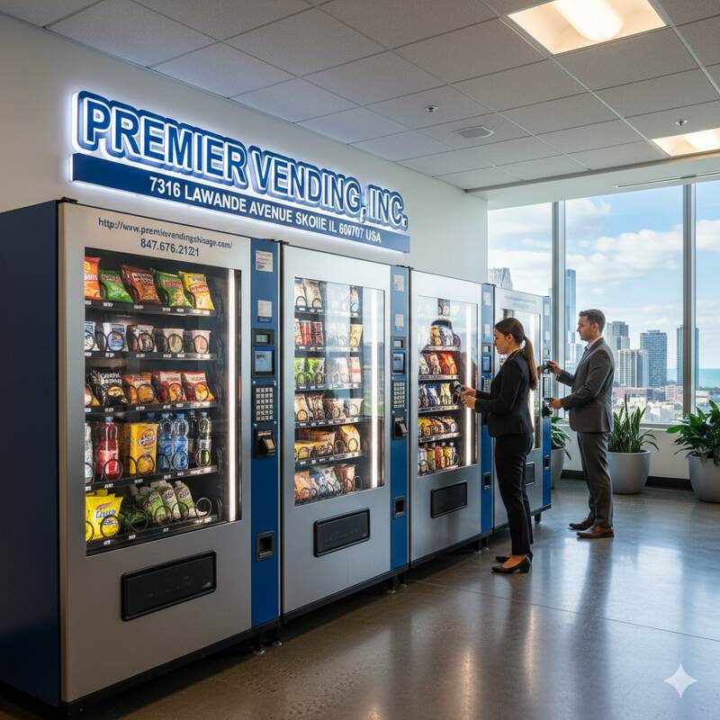 Premier Vending offers dependable chicago vending machines designed to meet the needs of offices, schools, warehouses, healthcare centers, and busy commercial spaces. Our service provides a wide range of snack vending, beverage vending, and healthy vending options to match different preferences. With fast restocking, modern cashless payment systems, and energy-efficient machines, we ensure smooth operation and a great user experience. Whether you need food vending, drink vending, or customized vending solutions, our team handles installation, maintenance, and support with attention to detail. Choose Premier Vending for convenient vending machine service, reliable product availability, and tailored solutions that suit your location’s needs. ![]() | |