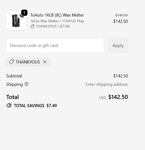 Use the deal link to save an extra 15% on ToAuto 30lbs & 12lbs wax melters for candle making. Enjoy free local shipping across the US, UK, EU, and AU — no tax and fully combinable with other discount codes! ![]() | |