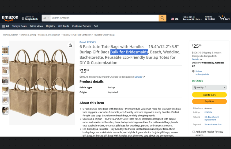40% OFF PEASIFY 6 Pack Jute Tote Bags on Amazon | |