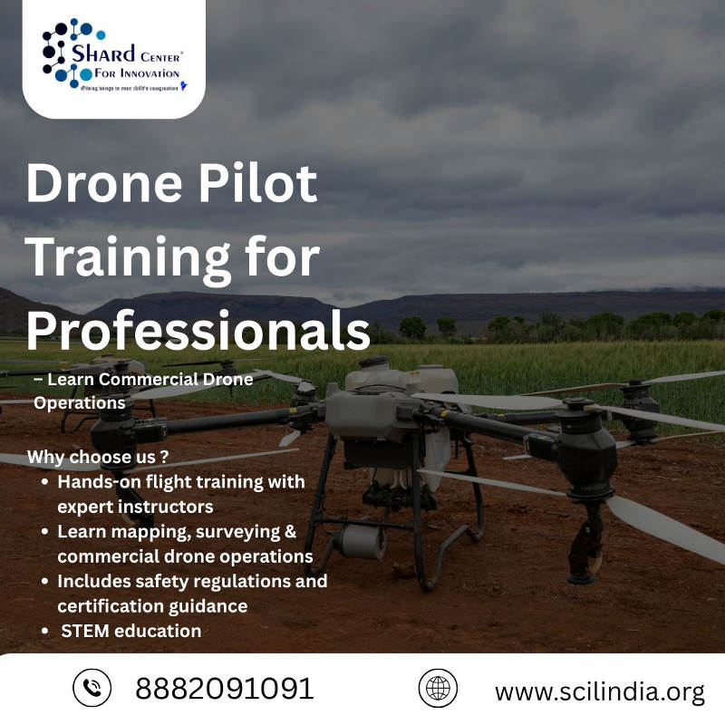 Upgrade your skills with industry-focused Drone Pilot Training for Professionals, designed to prepare learners for real-world commercial drone operations. This training program covers drone handling, aerial mapping, flight planning, safety regulations, and practical flight sessions with certified instructors. Whether you're working in photography, agriculture, surveying, inspection, or security, this course equips you with the technical skills and certification needed to operate drones professionally and safely. Why choose Shard Center for Innovation ? - Hands-on flight training with expert instructors - Learn mapping, surveying & commercial drone operations - Includes safety regulations and certification guidance “Fly Smart. Fly Professional.” Learn more - https://scilindia.org/courses/Drone-pilot-training-course ![]() | |