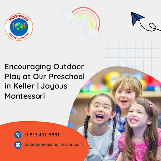 At Joyous Montessori, we make learning fun and active with meaningful outdoor play. Our Keller preschool offers children a chance to explore, interact, and grow in a natural setting. With Montessori-inspired activities, kids build independence, creativity, and strong developmental skills. Discover a joyful and engaging learning experience at Joyous Montessori. Visit: https://joyousmontessori.com/ #Daycareskeller #Montessoricostkeller #PrivateDaycareWithToddlerProgram #SchoolReadinessPreschoolKeller #MontessoriLowStudentTeacherRatio #Infantdaycareinkeller #Infantchildcareinkeller #Toddlerdaycareinkeller #Toddlerchildcareinkeller #ExtendeddaycareinKellerTX #AfterschoolMontessoricareinKellerTX #ChildcareServicesinKeller #Montessorioutdoorplay #Montessoriandoutdoorplay #InfantMontessori ![]() | |
