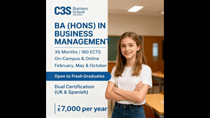 Have you ever imagined studying in a city where world-class business opportunities meet sunny beaches, vibrant culture, and an international lifestyle? That’s exactly what you get when you choose Barcelona for your Business Management degree. At C3S Business School, we believe education is more than books and lectures—it’s about experiences, connections, and preparing you for a successful global career. And Barcelona is the perfect stage to make that happen. Why Barcelona is Every Student’s Dream for Business Studies International Vibes – Walk into a classroom and meet students from every corner of the globe. You’ll build friendships and networks that will last a lifetime. Business at Your Doorstep – From global companies to innovative startups, Barcelona is a city buzzing with opportunities for internships, projects, and jobs. Perfect Lifestyle – Imagine attending your morning lecture, then heading to the beach in the afternoon, or exploring Gaudí’s stunning architecture over the weekend. Gateway to Europe – Being in Barcelona puts you right in the middle of Europe, with endless opportunities to travel, explore, and expand your career network. What Makes Business Management at C3S Special? At C3S Business School, our Business Management programs are designed to prepare you for real challenges. We don’t just teach theory—you’ll work on projects, dive into case studies, and gain hands-on experience that employers value. Here’s what students love about our programs: Globally recognised European qualifications. Industry-focused curriculum designed for today’s business world. Small class sizes that make learning personal and interactive. Career support to help you land internships and job placements. A multicultural environment that helps you grow personally and professionally. Career Opportunities Waiting for You Studying Business Management in Barcelona opens doors to exciting roles such as: Business Consultant Marketing Manager HR Specialist Entrepreneur or Startup Founder International Trade Expert The city’s strong business ecosystem ensures you’re not just studying—you’re stepping right into a world full of career possibilities. Life as a C3S Student in Barcelona Picture this: You’re in class learning about international marketing in the morning, grabbing tapas with friends in the afternoon, and attending a networking event at a tech startup in the evening. That’s life at C3S Business School—a mix of learning, fun, and career-building. With support services like visa guidance, career counseling, and internship opportunities, we make sure your study abroad journey is smooth and rewarding. Final Thoughts If you’re looking for a place where education meets adventure, culture, and career growth, then studying Business Management in Barcelona at C3S Business School is your perfect choice. Here, you won’t just earn a degree—you’ll discover yourself, make lifelong connections, and create a future full of opportunities. Ready to take the first step? Explore Business Management programs at C3S Business School and start your Barcelona journey today. ![]() | |