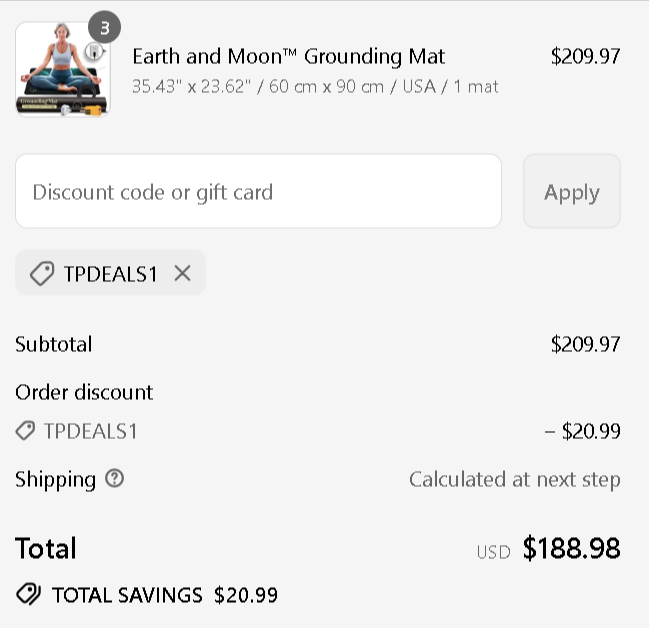 Use coupon code: TPDEALS1 and get 10% off your order from Earth and Moon. ![]() | |
