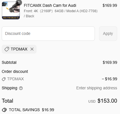 Use coupon code: TPDMAX and get 10% off your order from FITCAMX. ![]() | |