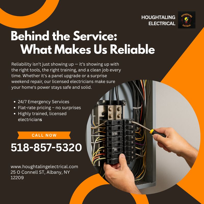 Looking for a reliable electrician in Albany, NY? Reliability isn’t just about showing up — it’s about showing up with the right tools, expert training, and leaving a clean job every time. From panel upgrades to emergency weekend repairs, our licensed electricians keep your home’s power safe, solid, and worry-free. Based in Albany — we’re here when it counts. Call us today or book an estimate online. Call Now: 518-857-5320 Learn More: www.houghtalingelectrical.com ![]() | |