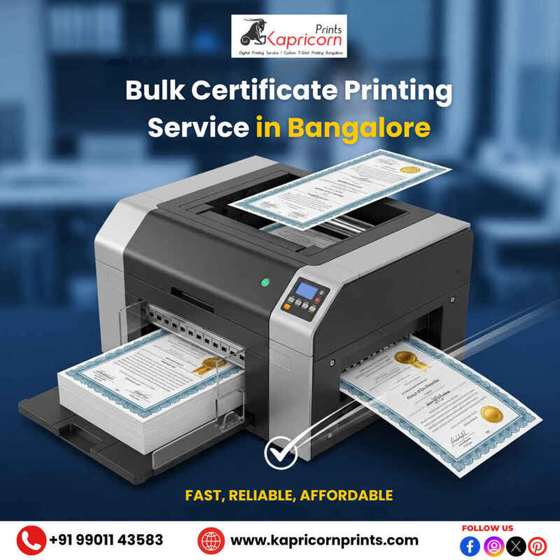 Kapricorn Prints provides excellent bulk certificate printing services in Bangalore, serving schools, colleges, corporates, and training institutes well. We know that certificates represent achievements and recognition, so our team focuses on delivering prints that highlight professionalism, clarity, and elegance. Our certificates are durable and attractive, and we print them in large quantities without compromising on quality. We ensure that your requirements are met accurately, on time, and within budget. Make Kapricorn Prints your go-to source for bulk certificate printing and let us manage the process for you. Our Services: ⦁ Visiting Card Printing ⦁ T Shirt Printing ⦁ Mug Printing ⦁ Flyer Printing ⦁ Corporate Gifting ⦁ ID Card Printing ⦁ Sign Board Printing ⦁ Certificate Printing ⦁ Promotional Product Printing ⦁ Poster Printing ⦁ Standee Printing ⦁ Screen Printing ⦁ Office Stationery Printing ⦁ Print On Demand ⦁ Wedding Cards Printing ⦁ Flex Banner Printing ⦁ Diary Printing ⦁ Brochure Printing ⦁ Calendar Printing For More Information: Call: +91 99011 43583 Address: 735, 45th Cross Rd, near Sangam Circle, 8th Block, Jayanagar, Bengaluru, Karnataka 560070 Email: contact@kapricornprints.com Website: www.kapricornprints.com ![]() | |