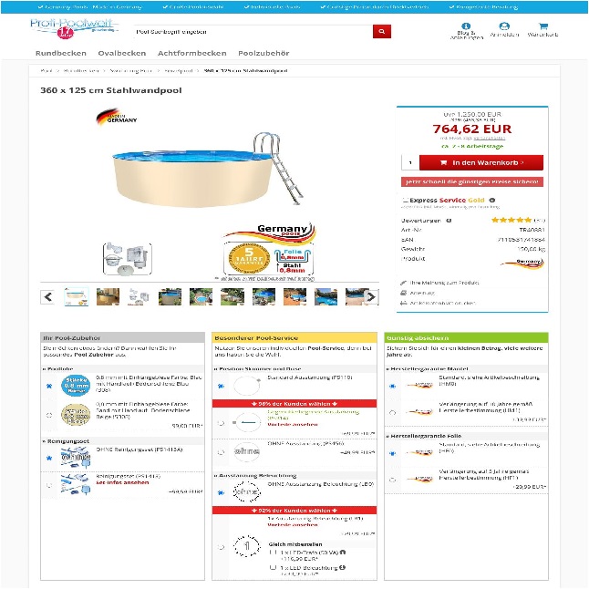 360 x 125 cm Stahlwandpool rund Pool 3,60 x 1,25 m Poolbecken Rundpool einlassen Schwimmingpool 360 x 125 Stahlwandpool einlassen Swimmingpool aufbauen 3,6 Stahlwandbecken Aufstellpool ohne Bodenplatte und Beton 3,6 online bestellen ![]() | |