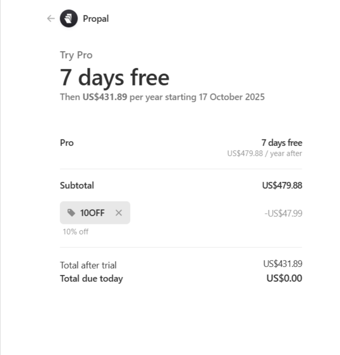10% OFF High Converting Proposal Software on Propal | |