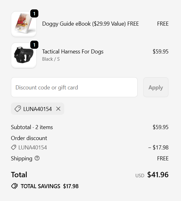 Use promo code: LUNA40154 at checkout to get 30% off plush free shipping your order on DoggyKingdom. ![]() | |
