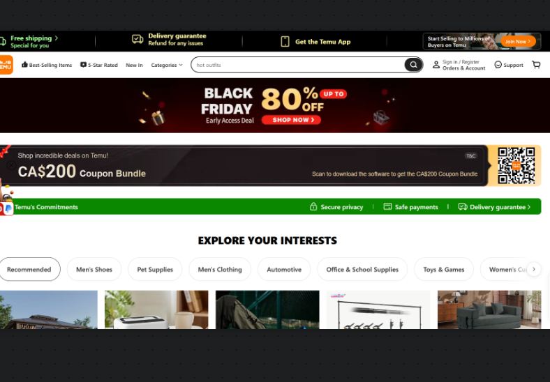 Black Friday: Get 40% OFF + $200 Coupon Bundle on Temu | |