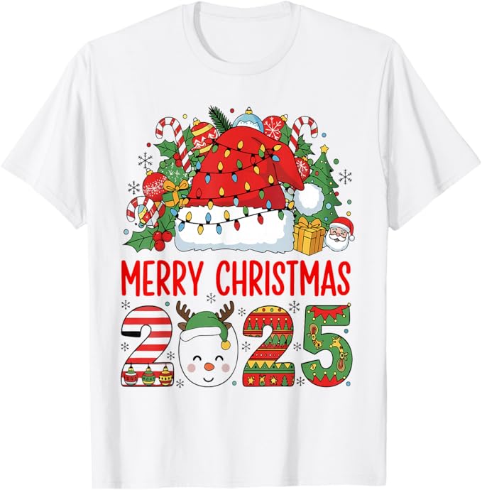 Merry Christmas Red Santa Hat Reindeer Xmas Matching Family T-Shirt | |